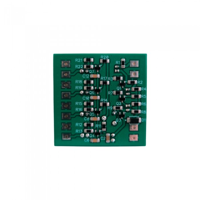 Застосовуючи попереднє підсилення, дана плата, крім функції розподілу, дозволяє регулювати рівень вихідного сигналу з коефіцієнтом підсилення від 0 до 2 з допомогою резистора R10. Таким чином, ви можете забезпечити оптимальний рівень сигналу навіть при великих відстанях передачі, або при високому струмі споживання.